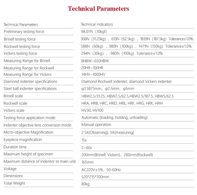 - Gaya Uji Vickers: 294N (30kg), 980N (100kg) – Toleransi ±1.0%.