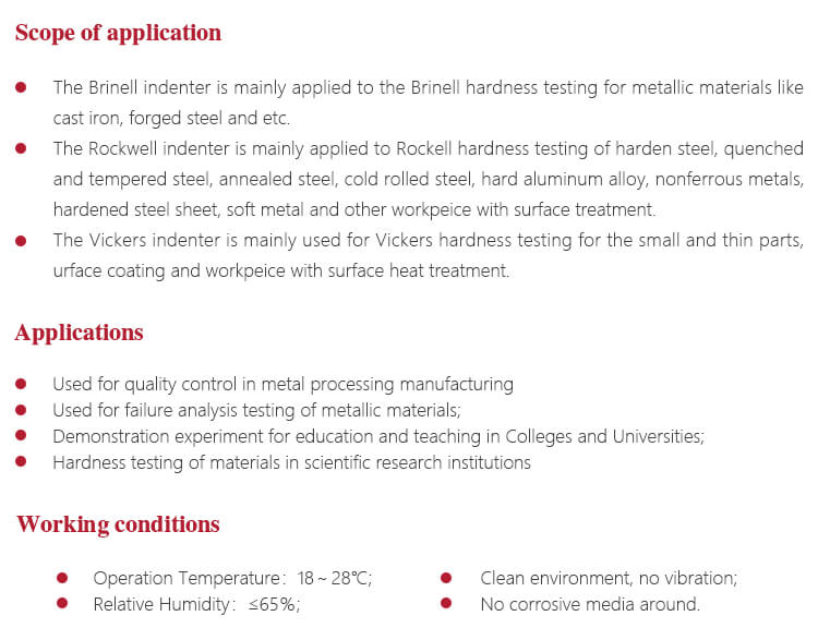 - Spesifikasi Indenter Bola Baja: Indenter bola baja φ1.5875mm, φ2.5mm, φ5mm.