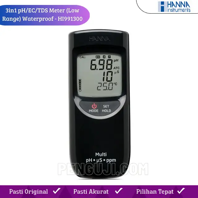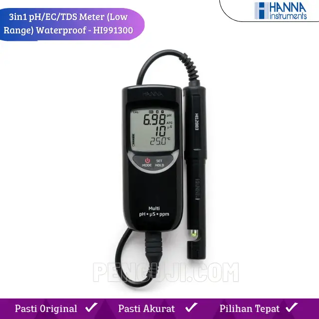 Beli Alat Ukur Air 3in1 pH/EC/TDS Meter (Low Range) Waterproof – HI991300 HANNA di penguji.com untuk dapatkan support teknis di Indonesia. Langkah awal untuk bersama visi kami