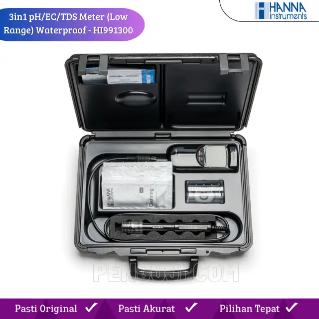 Pengukuran kualitas air merupakan bagian integral dari banyak industri dan aplikasi, mulai dari pertanian hidroponik hingga pengolahan air minum. Alat Ukur Air 3in1 pH/EC/TDS Meter (Low Range) Waterproof – HI991300 HANNA menjadi solusi yang canggih dan andal. Dengan berbagai fitur terdepannya, HI991300 menawarkan kemudahan penggunaan, akurasi tinggi, dan daya tahan terhadap lingkungan yang keras.