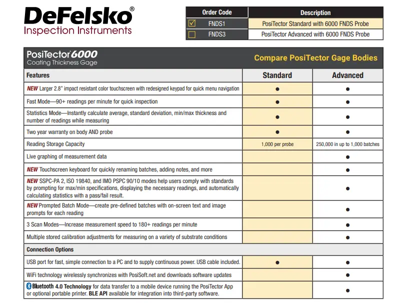 - PosiTector 6000 FNDS1 siap digunakan tanpa penyesuaian kalibrasi, memastikan kesiapan pengukuran yang cepat dan akurat untuk sebagian besar aplikasi.