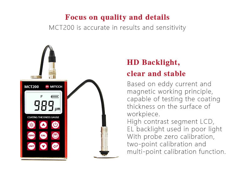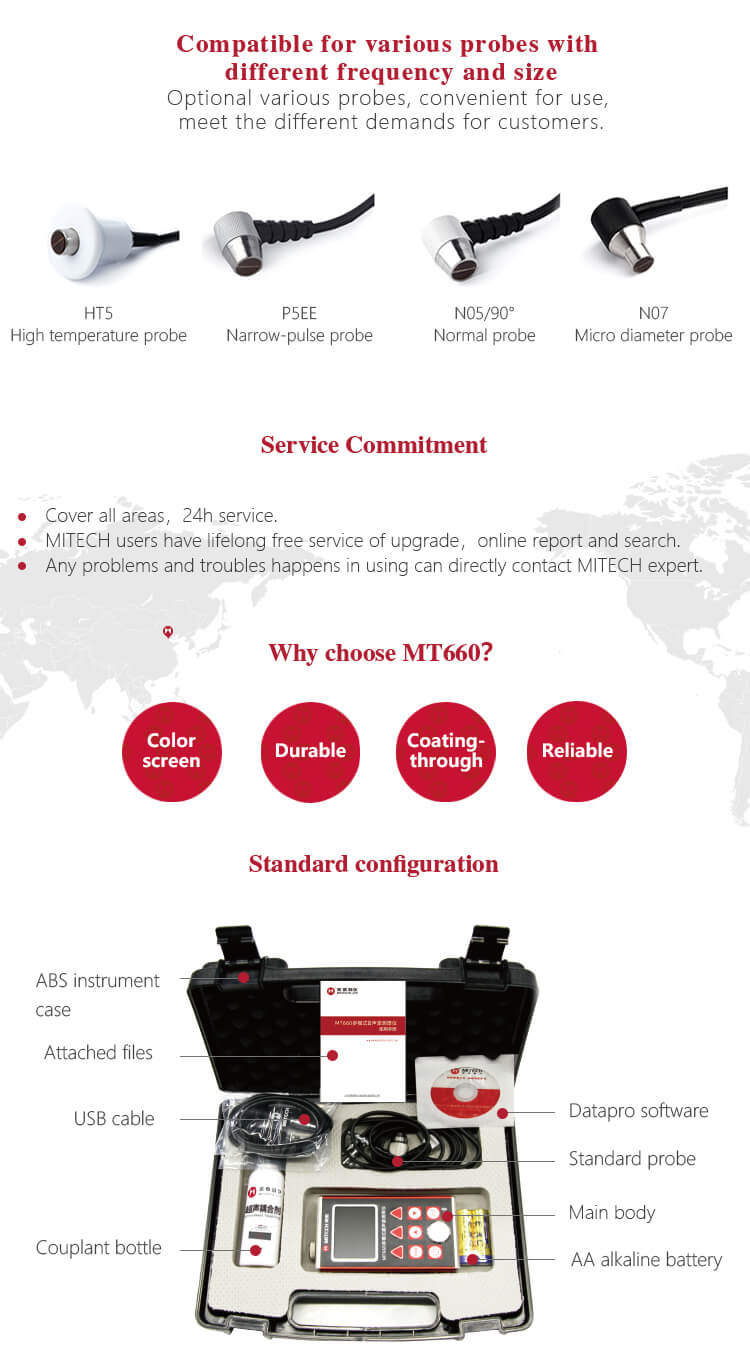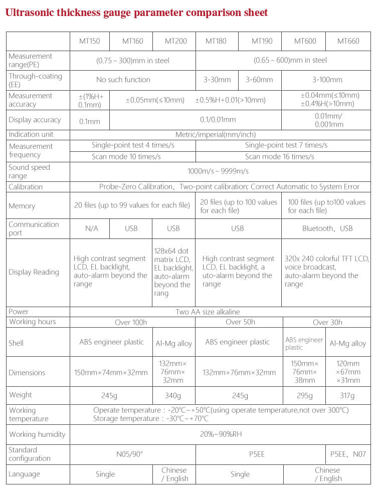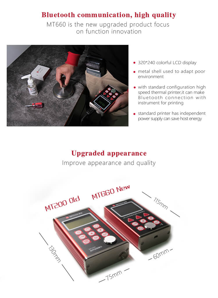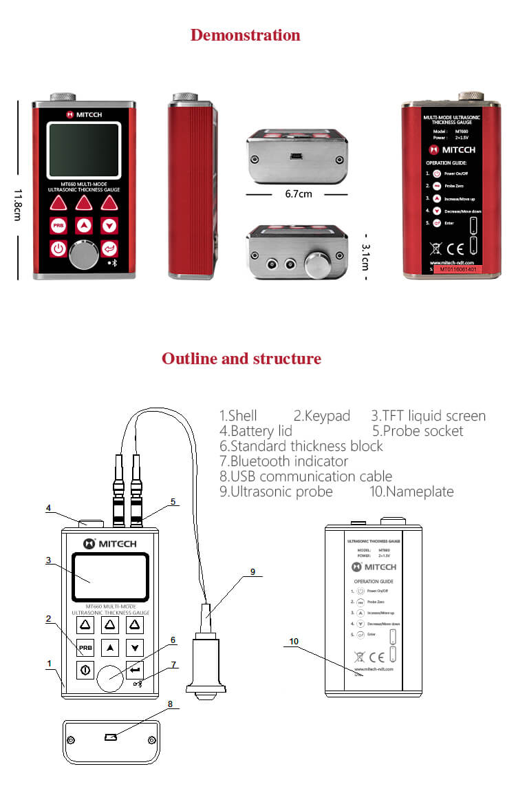 Alat Ukur Ketebalan Multi Mode Pulse-Echo (P-E) & Mode Echo-Echo MT660 MITECH adalah produk terbaru yang diupgrade oleh Mitech. Produk ini lebih memperhatikan pengalaman pengguna dan inovasi fungsional. Dengan layar LCD warna 320×240, produk ini dapat menampilkan hasil pengukuran dengan jelas di bawah cahaya redup dan sinar matahari yang kuat, meningkatkan pengalaman visual secara signifikan. Desain kasus aluminium-magnesium yang rapat dan halus, ukuran yang lebih kecil, kualitas yang lebih baik dirancang khusus untuk melindungi dari minyak, debu, dan lingkungan buruk lainnya.
