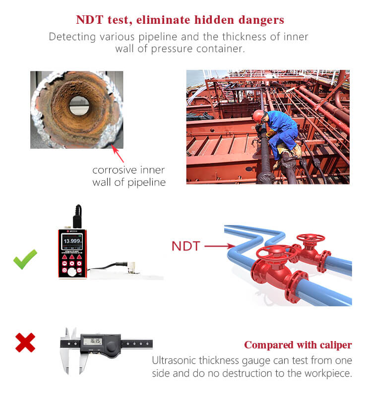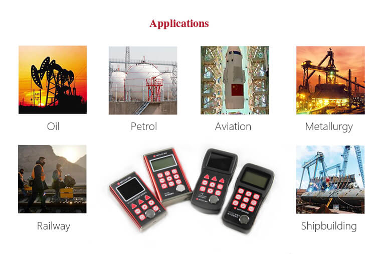 Digunakan secara luas untuk memantau derajat korosi peralatan produksi di berbagai bidang seperti minyak, kimia, metalurgi, galangan kapal, penerbangan, antariksa, dan sebagainya. Juga dapat digunakan untuk mengukur dengan akurat berbagai plat dan bagian mesin. Ini adalah instrumen presisi profesional yang diperlukan untuk meningkatkan efisiensi produksi dan tingkat kualifikasi serta menghemat biaya.