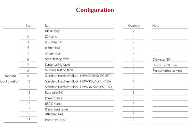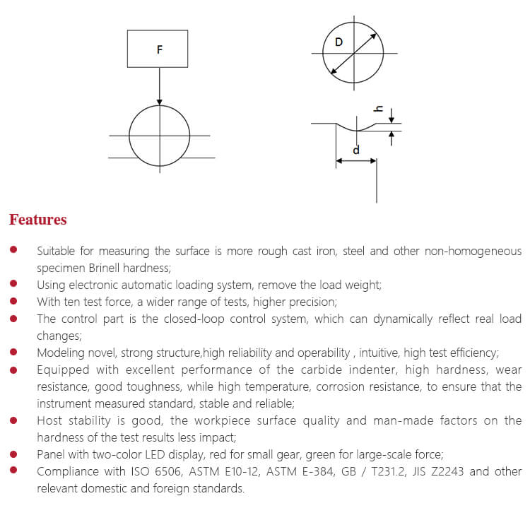- Sesuai dengan berbagai standar domestik dan luar negeri seperti ISO 6506, ASTM E10-12, ASTM E-384, GB / T231.2, JIS Z2243, dan lainnya.