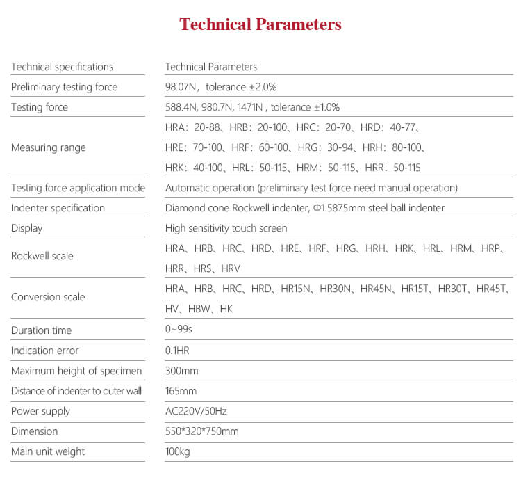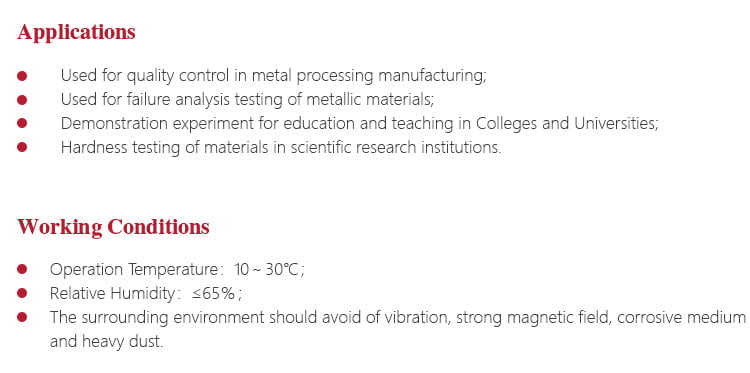 - Dilengkapi dengan indenter berlian atau paduan keras yang sangat baik, tingkat kekerasan tinggi, tahan aus, tahan panas, tahan korosi, untuk memastikan hasil pengujian alat ini akurat, stabil, dan dapat diandalkan.