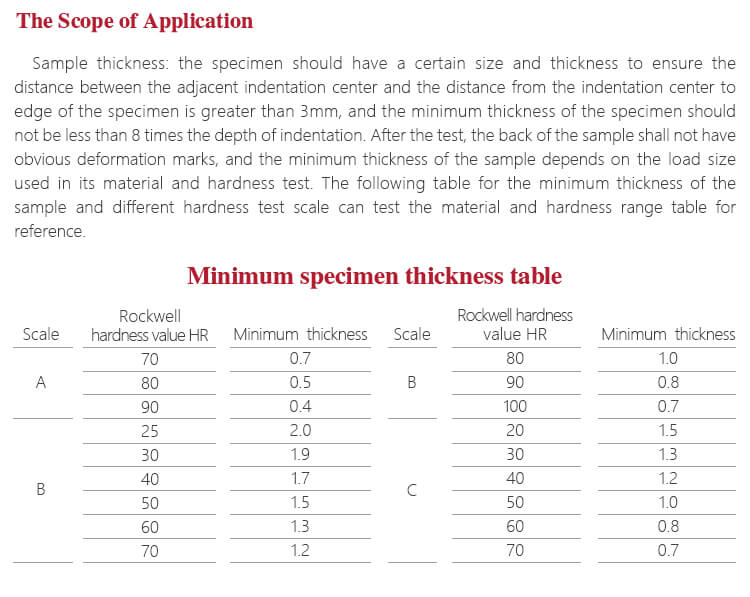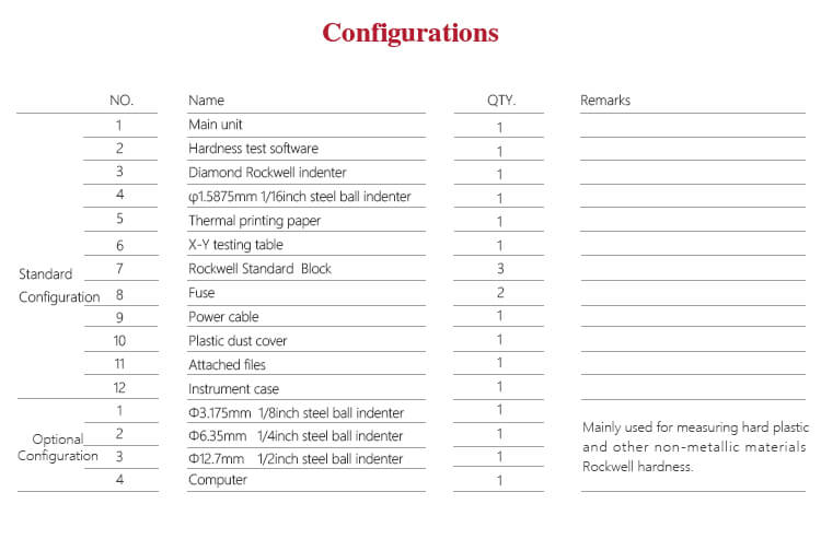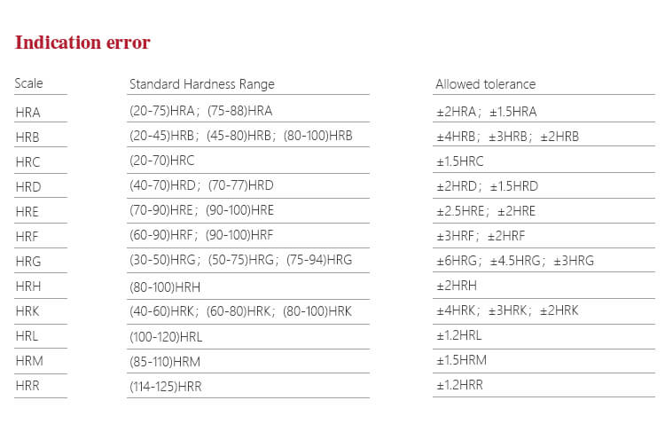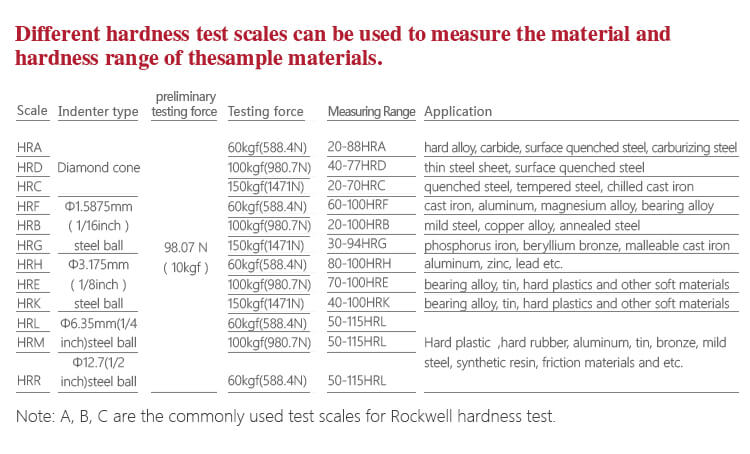 - Pilihan untuk berbagai spesifikasi indenter, mendukung 15 jenis skala kekerasan Rockwell.