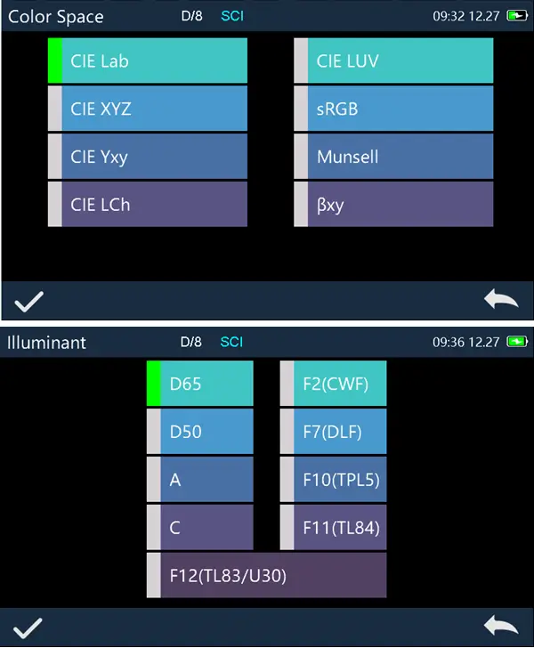 - Illuminant: D65,A,C,D50,D55,D75,F1,F2,F3,F4,F5,F6,F7,F8,F9,F10,F11,F12,CWF,DLF,TL83,TL84,TPL5,U30
